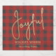 Joyful in a faux gold foil script and your names in chic lettering on a red and gray buffalo plaid pattern, these sparkling wine bottle labels are stylish for Christmas gifts or to label wine served at your holiday occasion.