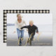 Gold Joyful Script Holiday Photo Card with Black and White Plaid Pattern on the Back.