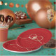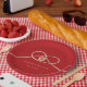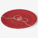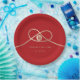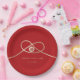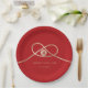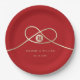 Modern minimalist double happiness knot of union, love and marriage in red and gold wedding party paper plate.