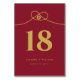 Simple Minimalist Yellow Gold Knot Union Double Happiness On A Plain Burgundy Red Background, Double Sided Chinese Wedding Table Number Card.