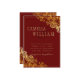 The intricate gold lace foil-look design pops against the deep burgundy background, creating a stunning and luxurious effect. These invitations are perfect for formal or black-tie weddings, as well as for couples who want a bold and glamourous invitation.