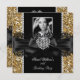 Gold Lace Diamond Heart Photo Birthday Party Invitation