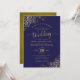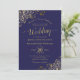 Gold Lace on Navy Blue Elegant Formal Wedding Invitation