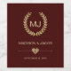 Elegant laurel wreath with foil gold heart on dark red background