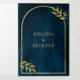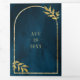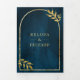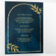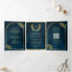 Gold Laurel Wreath Leaves Ocean Blue Wedding Tri-Fold Invitation