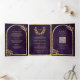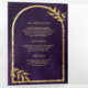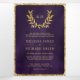 Gold Laurel Wreath Leaves Royal Purple Wedding Tri-Fold Invitation