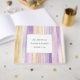 Gold Lavender Purple Stripes personalised wedding guest book with love is patient, love is kind, your names and wedding date