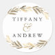 Gold leaf Elegant Modern Couples Name Wedding Classic Round Sticker