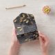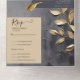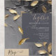 Immerse your wedding in a tapestry of abstract impasto beauty – delicate gold leaves scatter like whispered promises across a charcoal canvas. A symphony of light and darkness dances in each stroke, creating a tactile masterpiece that resonates with modern brides seeking both boldness and intimacy.
