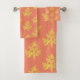 Gold Leaf on Coral Botanical Pattern Bath Towel Set