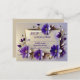 This wedding RSVP postcard has a 3d standout look to it and features an elegant and artistic design with vibrant purple flowers accented by golden leaves and delicate branches, arranged around a sophisticated frame for personalised text. The background is a soft gradient of beige and light purple, creating a harmonious and romantic atmosphere. The floral motif with intricate details and gold accents adds a touch of luxury, while the classic frame is ideal for featuring the text. This design sets a romantic and elegant tone for your special day. Personalise the text as needed. You can download the card to your mobile device or computer. I designed the card with generative ai technology.