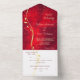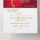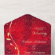 This pretty all season wedding invitation with tear away RSVP card in tones of gold and vivid red will give a sense of elegance to your wedding! The inside has a graceful gold swirl adorned with a few leaves, and there's a subtle gold confetti overlay to add a bit of sparkle. Your wedding text is in pale gold at the right of the leaf swirl image. Everything is placed on a stunning red gradient background that seems to almost glow. The bottom tear away RSVP portion has the swirl image continued, but is white to make it easy for your respondent to mark. If you don't need a text field, just blank it out, and if you need help organizing different text, please contact us. We are always happy to help. If you're having a buffet reception, we can work with you to re-design the RSVP portion, so don't hesitate to ask! An added bonus and personal touch is your own photograph on the back flap.
