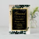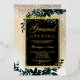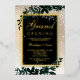 A modern, chic and elegant real gold foil typography Floral green watercolor Grand Opening Christmas party invitation with hand painted green watercolor leaf foliage on a chic yellow gold gradient with white snow and snowflakes..