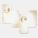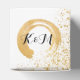 'Gold Leaf Spry' wedding collection design brings cheek to chic. Sparkly simple, minimalist design. A double sided wedding stationary, announcement text on one site and on the other side the bride and groom a duo-gram initials on top of a gold leaf seal. There are 2 versions of a gold leaf seal; A hollow circled brush stroke, and the other is like a messy ink spill.