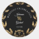 Gold Leaf Wreath Black Elegant Wedding Typography Classic Round Sticker