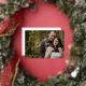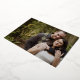 A beautiful landscape wedding save the date announcement featuring a gold foil shield crest adorned with leaves, with your monogram and wedding date on the left overlaying your favourite horizontal photo.