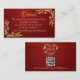 Gold Leaves Frame on Ruby Red, QR Code Enclosure Card