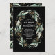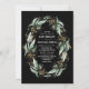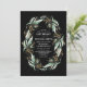 Watercolor greenery and gold leaves wreath black wedding invitation