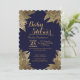 Gold Leaves on Navy Blue Baby Shower Invitations