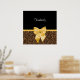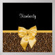 This bold, glamorous design features a rich black upper panel paired with a striking gold leopard print pattern in deep brown, caramel, and black tones. A vibrant gold satin bow (flat printed image) sits at the center, adding a luxurious, boutique-inspired focal point. The elegant white script name stands out beautifully against the solid black background, creating a dramatic contrast that enhances the chic, fashion-forward style.