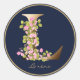 Gold Letter L Navy Elegant Floral Monogram Classic Round Sticker