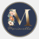 Gold Letter M Elegant Navy Blue Floral Monogram Classic Round Sticker