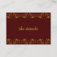 This design has a Faux Filigree Gold Foil Flower and Ivy stem on a Burgundy background. Coupled with the romantic gold lettering and script this design is perfect for an elegant and trendy wedding. This simple minimalistic designed Enclosure Card has the words "the details" on the front with customisable wedding details on the back. It is stylish, chic, and romantic and will be perfect for a wedding any time of the year be that summer, winter, spring, or autumn/fall. PERSONALIZE by editing the text in the text boxes. Click/Tap "Personalise this Template" insert your own chosen name and details. To change font size or colour click/tap “click to customise further”. This WEDDING COLLECTION hosts a number of matching wedding stationery and accessories, also the design can be transferred to many other products on Zazzle.