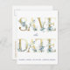 Gold Letters Blue Watercolor Flowers Announcement Postcard