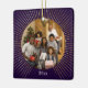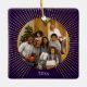 Gold Line Purple Photo Family Christmas Ceramic Ornament