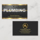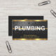A water drop layer is accentuated by gold striped borders at the upper and lower rims of the card. At the centre is the "PLUMBING" signage that has its reflection on its watery surface. Towards the base of the card lies your prestigious name and the contact details in faux gold.
