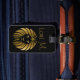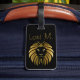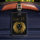 A grand full maned golden lion silhouette adorns this majestic luggage tag on any background colour you choose with optional name text! Add elegant style to your bags with this luggage tag and treat yourself to something special today!