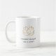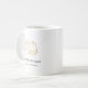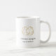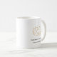 Chic personalized mug for your spa, holistic health & wellness, yoga studio, or massage therapy business features two lines of custom text in charcoal gray lettering, topped by a faux gold foil lotus flower logo. A silhouette of a meditating person is subtly worked into this modern and elegant design that's perfect for branding your wellness-related business. Personalize with your name or business name.