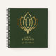 Chic and elegant notebook featuring a faux gold foil illustration of lotus flower on a classic hunter green background.