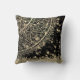Gold Lotus Mandala with Gold Stars on Black Cushion