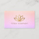 Luxury Gold Lotus Modern Yoga Instructor Pink Purple Business Card Template with Social Media Icons (Facebook, Twitter, Instagram, Pinterest, Youtube)