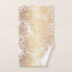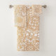 A towel set featuring a beautiful boho chic white and gold mandala pattern design. Makes a beautiful addition to your bathroom or gift idea for someone who likes boho mandala designs and yellow gold.