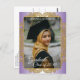 Unique and trendy congratulations graduate announcement and celebration party invitation card, with a classic faux shiny gold coloured mandala circle on a violet amethyst purple and white ombre gradient pattern background. With room to customise or personalise with a photo, the name of the graduate, class graduation year, high school and future college or university name. Let the family, friends and neighbours know there is a happy graduate ready to conquer the world, and invite everybody to come celebrate the happy event with you!