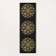 This elegant yoga mat features a pattern of three large gold mandalas on a black background.