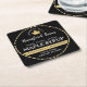 Gold Maple Leaf on Black Maple Syrup Dashed Border Square Paper Coaster