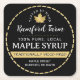 Classy maple syrup coaster to promote your traditionally made pure local maple syrup. Gold sugar maple leaf on black background.