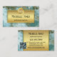 Business card featuring an abstract teal green marble-look design with a gold frame to allow for easy addition of text. The logo is optional, as is the easy to customise QR code template on the back.