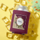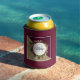 Can cooler with a golden marble pattern and a solid burgundy colour layered diagonally together. A circle with a faux gold foil border which is layered over a pretty floral bouquet with roses, carnations and other flowers. Personalise with your name and monogram inside the circle.