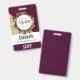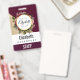 Gold Marble Pattern and Burgundy Florals Monogram ID Badge