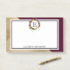Large sized, landscape orientation, sticky notes with a golden marble pattern and a solid burgundy colour layered diagonally together. A white rectangle layered over top to write inside. A circle with a faux gold foil border which is layered over a pretty floral bouquet with roses, carnations and other flowers, placed at the top. Personalise with your monogram initial inside the circle.