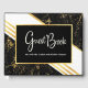 Gold marble stripes typography black guest book