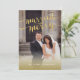 Holiday greetings to your loved ones are made easy with this versatile, simple holiday photo card with the words "Married and Merry" written in a white script font text overlay with a red ombre effect over your favourite wedding photo. Design by ELKE CLARKE© Replace sample photo with your own. Second photo with a gold frame on back of card. Other colours available in store or on request.