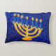 Gold Menorah Blue Faux Glitter Decorative Cushion