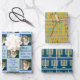 Shop Hanukkah wrapping paper sheets in a fun assortment of gold Menorah stripes, blue on yellow gold typography and a personalised add your photo design. Upload your photo and personalise two separate text templates on the light pastel blue design. Create some Chanukah cheer by adding your child's name to the typography design on a deep antique gold background with words of the Hanukkah season in different shades of blue. The wrapping paper sheet with gold Menorah stripes is set on a dark ocean blue background with smaller accent stripes for a festive look. Create your own Hanukkah gift wrap, personalised as you like it, in this stylish gold Menorah three design wrapping paper sheet assortment.