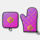 Gold Mermaid Scales Pink Glitter Pattern Monogram Oven Mitt & Pot Holder Set
