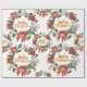 Gold Merry Christmas Floral Wreath with Poinsettia Wrapping Paper